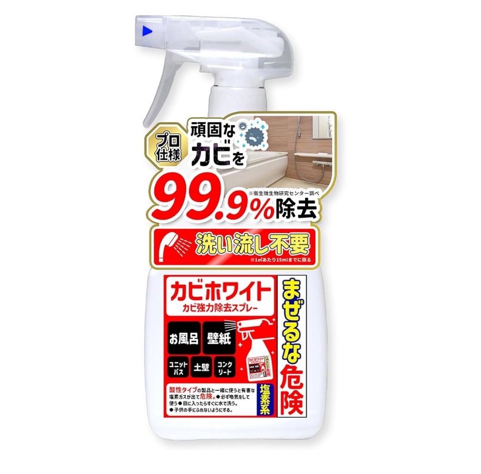 使用したカビ取り剤は「カビホワイト カビ強力除去スプレー」。製造元:株式会社ビーワンコーポレーション